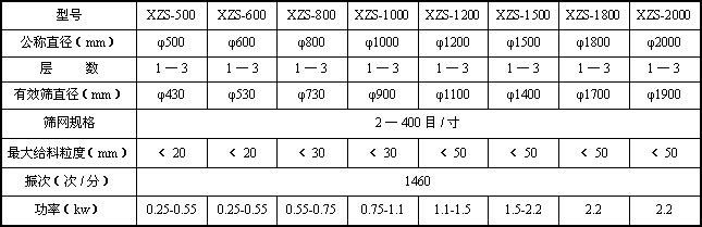 XZS系列旋振篩振動形式特殊,物料運(yùn)動軌跡和振幅可調(diào),滿足不同工藝要求。任何顆粒、細(xì)粉、漿液均可篩分過濾;篩分效率高,既可概略分級,又可進(jìn)行精細(xì)篩分或過濾;體積小、重量輕、安裝移動方便;網(wǎng)架設(shè)計(jì)獨(dú)特、換網(wǎng)容易,篩網(wǎng)壽命長、清洗方便、操作簡單;全封閉,無粉塵溢散,有利于改善勞動條件;粗、細(xì)料自動分級排出,能實(shí)現(xiàn)自動化作業(yè);出料口繞軸線360°任意設(shè)置,便于布置配套設(shè)備;耗能小,噪音低、滿足節(jié)能、環(huán)保要求;保養(yǎng)簡單,可單層或多層使用。