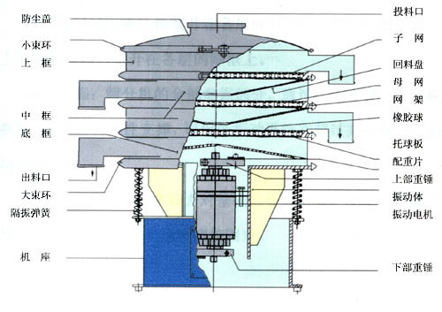 XZS系列旋振篩是在S49系列旋振篩的基礎(chǔ)上,吸收國內(nèi)外先進(jìn)技術(shù),并采用先進(jìn)的加工工藝而設(shè)計(jì)的高精度篩分過濾機(jī)械,它是以立式振動電機(jī)或?qū)S眉ふ衿鳛檎駝釉?,立式振動電機(jī)(或激振器)上、下端裝有偏心重錘,可產(chǎn)生水平、垂直、傾斜的三次元運(yùn)動,通過調(diào)節(jié)上、下偏心重錘的相位角,改變物料在篩面上的運(yùn)動軌跡以達(dá)到篩分各種物料的目的。該產(chǎn)品適用于任何粉、粒、液的篩分和過濾的行業(yè)。廣泛用于化工、醫(yī)藥粉、液、涂料、顏料、化妝品、油脂、樹脂、陶瓷漿、粘土泥漿、生石灰、耐火材料粉末,冶金粉末、電磁粉末、研磨粉、果汁、飲料、食糖、食鹽、味精、調(diào)料、奶粉、淀粉、面粉、米粉、碳粉、石墨粉、錳粉、碳酸鋰、助溶劑、滅火劑以及環(huán)保行業(yè)的污水、廢水處理的工藝過程中的篩分、過濾。