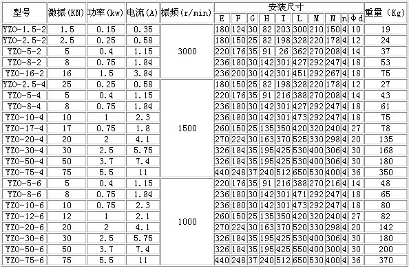 產(chǎn)品說明: YZO系列振動電機技術(shù)參數(shù)...